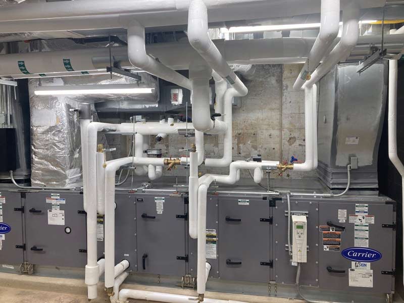 HVAC Description: Hottel’s Engineering Department spearheaded the design for this renovation project, which encompassed a comprehensive array of installations including a Carrier air-cooled chiller, Carrier AHU’s, VRF FCU 1 through 60, VRF ODU 1 through 8 condensers, VRF 1 through 52 Flow selector boxes, electric wall heaters, Greenheck Exhaust fans, Aerco condensing boiler, B&G hot water pumps, air separators, expansion tanks, chilled water buffer tank, VFDs for hot water pumps, (2) chemical feeders, glycol make-up unit, and a kitchen hood installation. Our team demonstrated exemplary dedication and skill, surpassing all client expectations with the successful completion of every aspect of the renovation.
